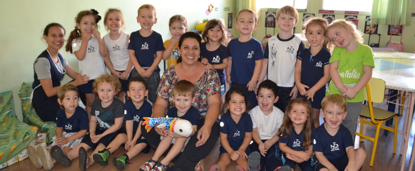 As crianças matriculadas no Nível I da Educação Infantil do Colégio Notre Dame Aparecida estão aprendendo sobre os diferentes tipos de peixes e seus habitats.