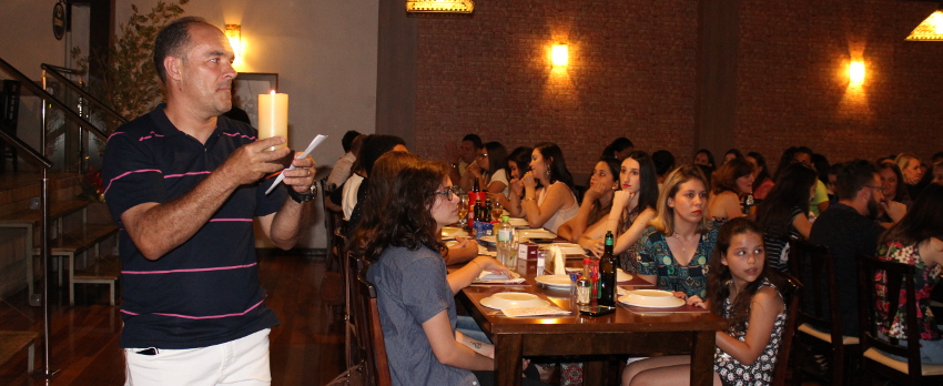 Confraternização de Natal (25)Antes de saborear o jantar, contudo, os convidados – acompanhados por seus familiares e por membros da Associação de Pais e Mestres (APM) – participaram de um momento de espiritualidade.