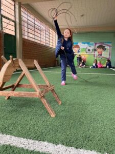 As crianças que integram as diferentes turmas da Educação Infantil, por sua vez, tiveram a oportunidade de passear a cavalo, recordando os saberes previamente construídos sobre o animal que é símbolo do Rio Grande do Sul. Elas ainda aprofundaram conhecimentos acerca do folclore gaúcho, prestigiando apresentações artísticas protagonizadas por peões e prendas.