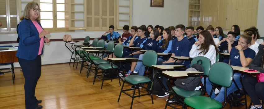 Primeiramente, Jussara, explicou aos estudantes como a organização atua, ressaltando, a atenção direcionada aos pacientes oncológicos que vivem em situação de vulnerabilidade social e o envolvimento em campanhas de prevenção ao câncer. Além disso, destacou a amplitude do trabalho voluntário, que beneficia tanto a comunidade à qual é destinado como as pessoas que o realizam, expandindo seus olhares e empregando sentido às suas vidas.Voluntariado (52) “Ser um bom cidadão não é apenas pagar os impostos em dia, mas, principalmente, transformar a realidade em que se vive, seja no meu bairro, na minha escola, na minha família, no meu grupo de futebol…”, afirmou.