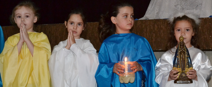 Na tarde de segunda-feira (06), as crianças matriculadas na Educação Infantil do Colégio Notre Dame Aparecida participaram ativamente de celebração em homenagem à padroeira da instituição de ensino e do Brasil.