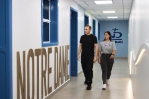 Por fim, a comunidade escolar uniu suas vozes para parabenizar o Colégio pelo seu aniversário – celebrado em 10 de março. E, posicionando-se diante da edificação histórica da instotuição, prestigiou o ato festivo que marcou a entrega de uma estrutura revitalizada aos estudantes de Ensino Fundamental e Ensino Médio. Dentre as melhorias realizadas, estão a modernização das áreas de circulação, adequações no forro dos corredores para oferecer maior conforto térmico e visual, renovação da infraestrutura elétrica em pontos estratégicos e criação de novos ambientes de aprendizagem. Para que tais adequações fossem empreendidas, como afirmou a diretora financeira da Rede de Educação Notre Dame, Irmã Maria Helena Rovani, foi imprescindível a compreensão das famílias, que demonstraram paciência durante o período de reformas.