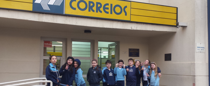 Após, em turmas, foram até a Agência dos Correios, onde depositaram as correspondências para que fossem encaminhadas aos destinatários.