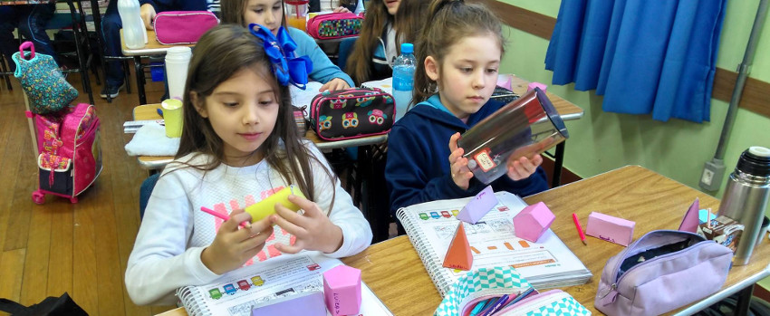 Inicialmente, elas compreenderam que as Figuras Geométricas possuem todos os seus pontos no mesmo plano, enquanto os Sólidos caracterizam-se por ter três dimensões – comprimento, largura e altura. Além disso, eles são limitados por superfícies planas, como o prisma e o cubo, ou por superfícies curvas, como o cilindro, o cone e a esfera.