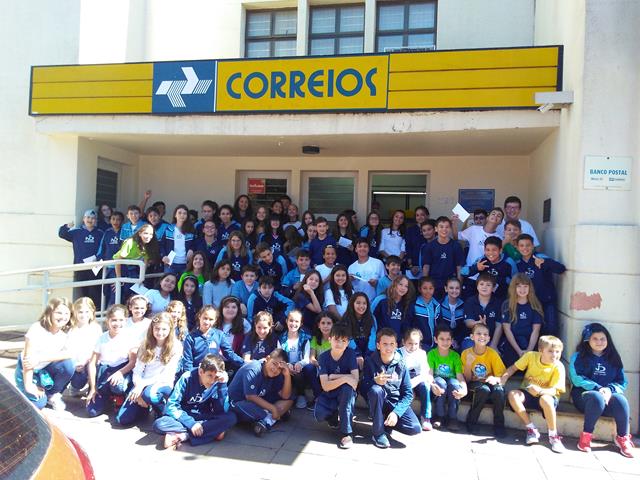 Após terem escrito as correspondências – que continham, também, um pedido de resposta – os educandos de ambos os segmentos de ensino deslocaram-se, juntos, à agência dos Correios, a fim de postá-las.