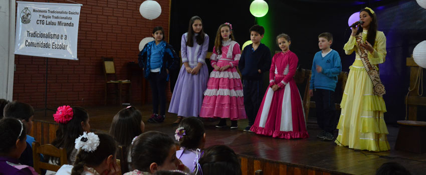Ao chegarem no local, as 10 turmas do segmento foram recebidas pela Primeira Prenda Juvenil da entidade, Vitória Oliveira, para um momento de troca de saberes, onde conversaram sobre as lendas que fazem parte da cultura gaúcha. A história do chimarrão e a da Mãe Preta (de origem passo-fundense), foram algumas das narrativas compartilhadas. Além disso, os estudantes assistiram à dramatização – feita por integrantes do CTG -, da lenda “Negrinho do Pastoreio”, popular no Sul do Brasil, e acompanharam a apresentação de danças tradicionalistas,